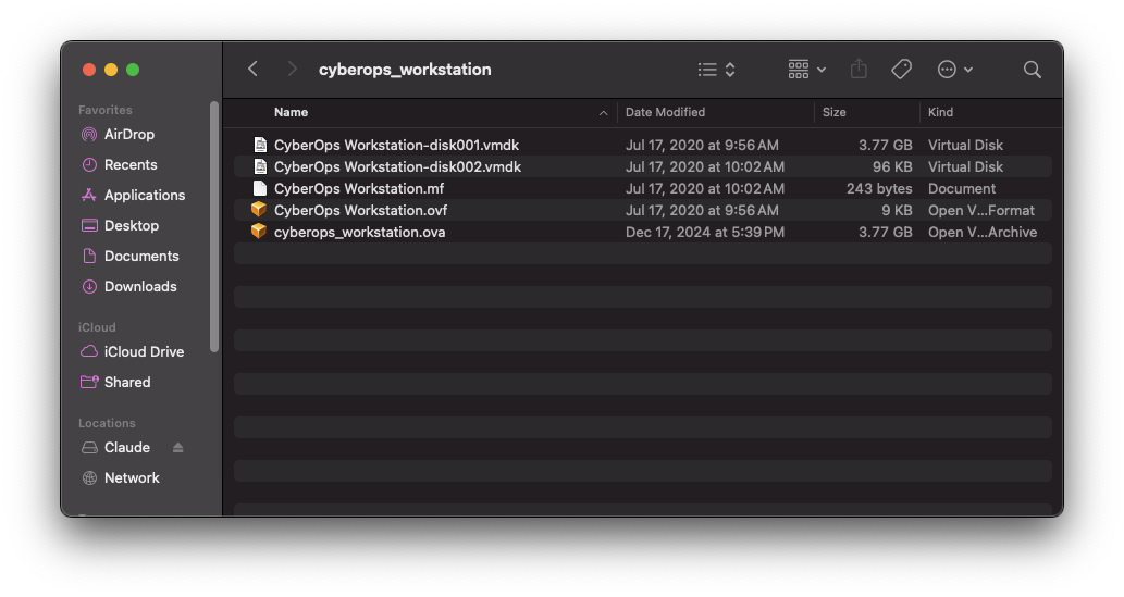 # Locate the first VMDK disk file, "CyberOps Workstation-disk001.vmdk"