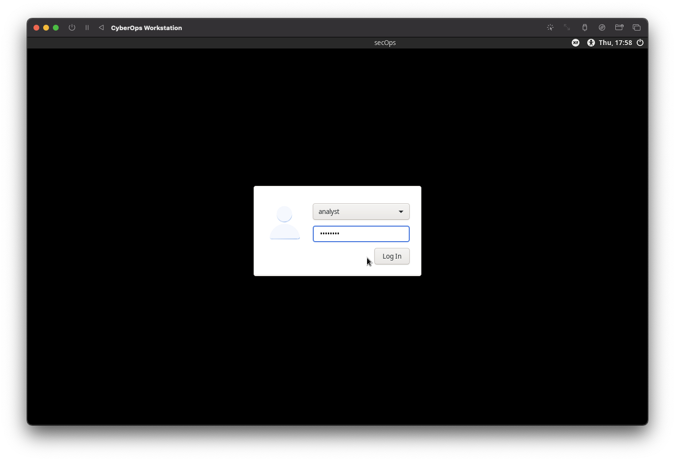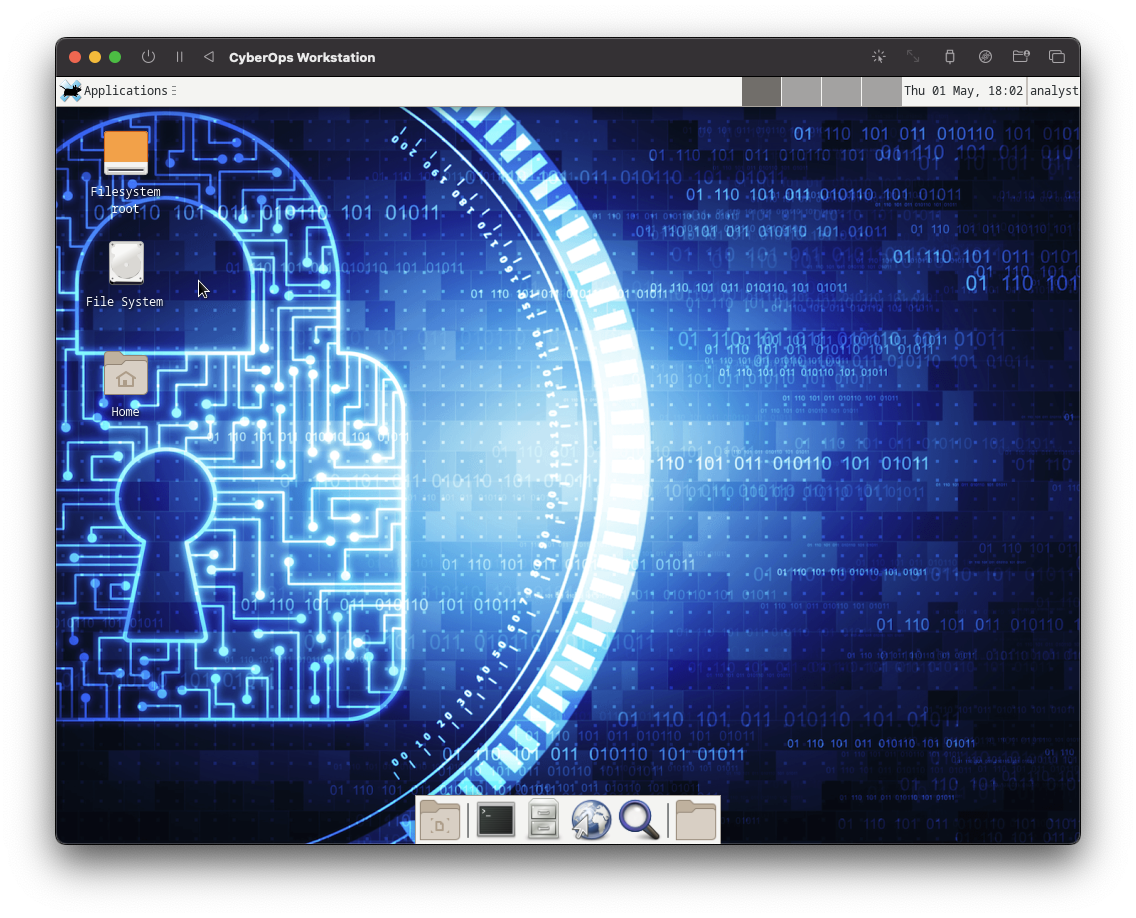- Once logged in, you should see the CyberOps Workstation desktop environment