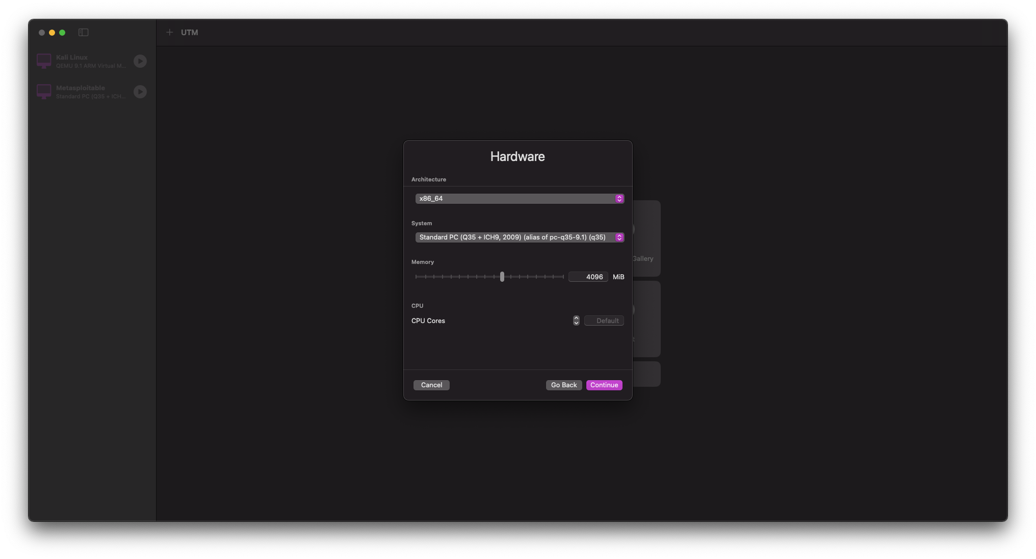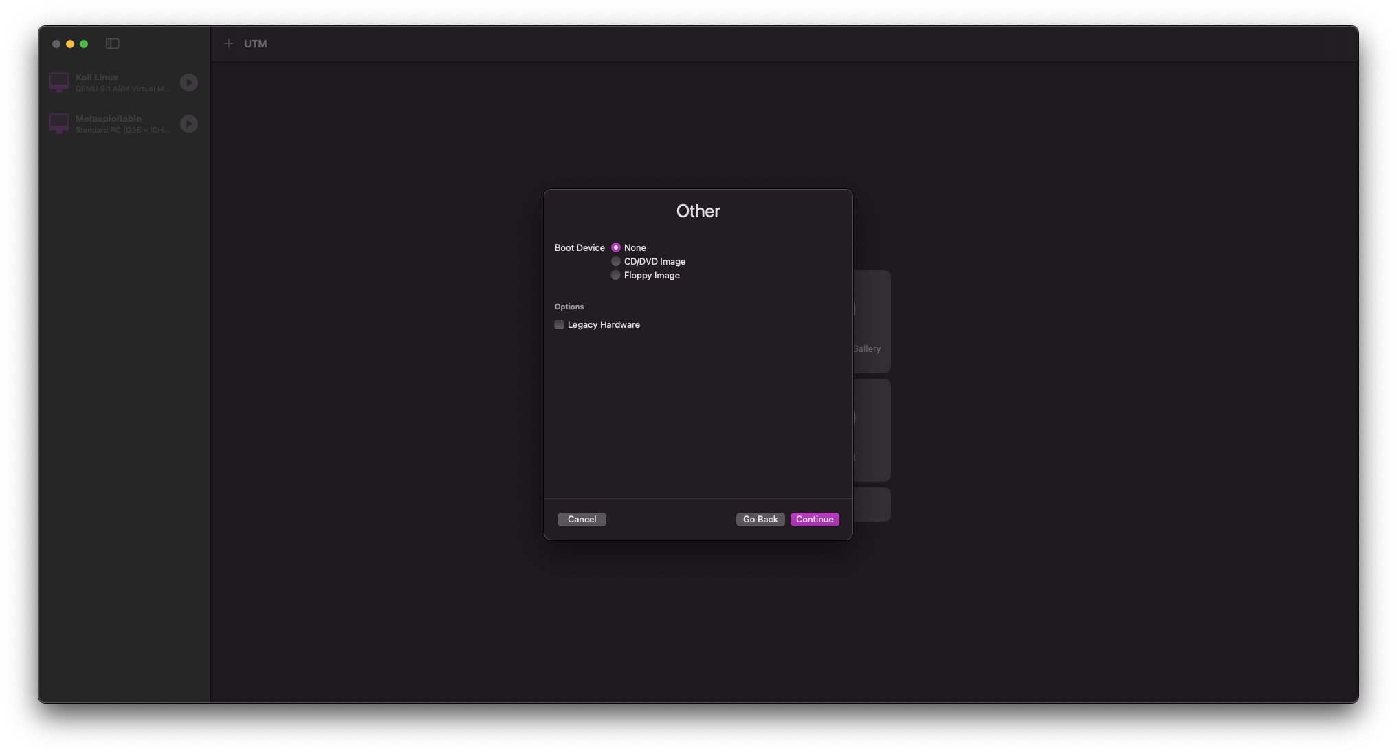 Now we’ll create a new virtual machine in UTM that will use our converted disk image: