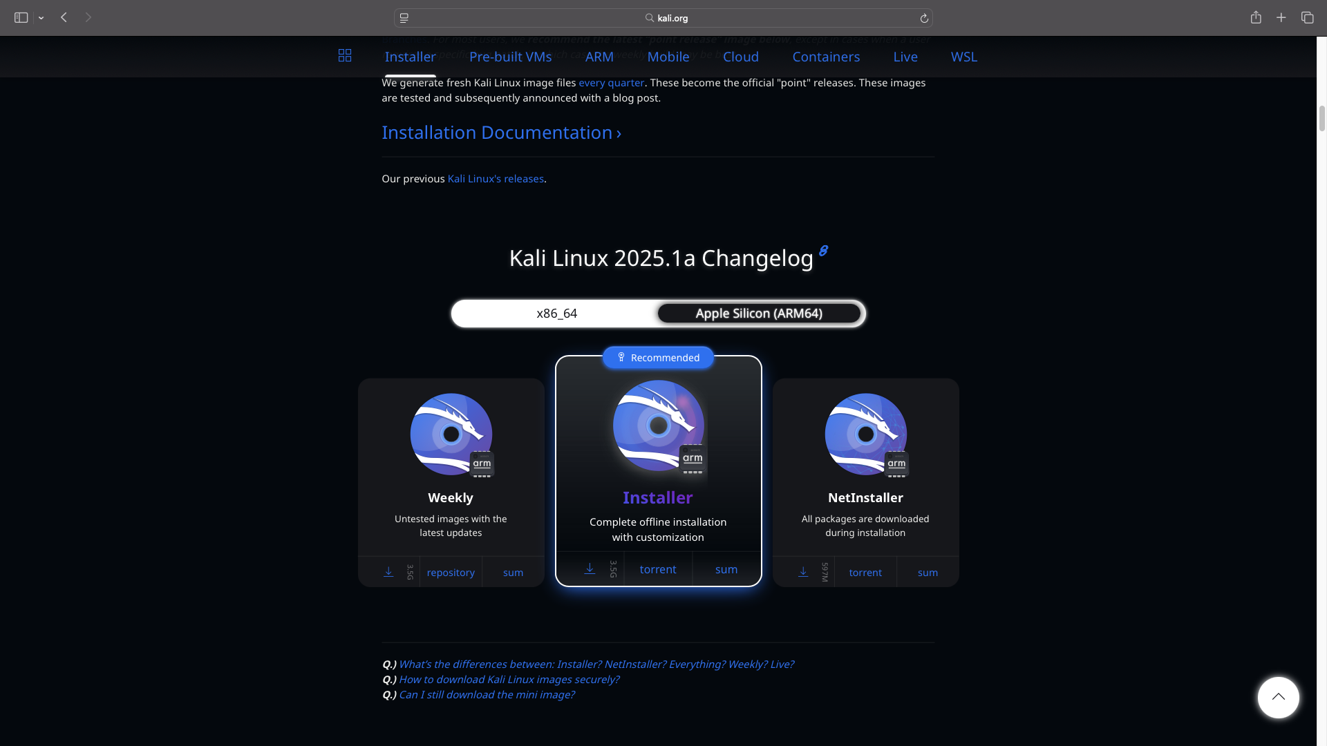 - Download the latest Kali Linux ARM64 ISO from the official Kali Linux Website