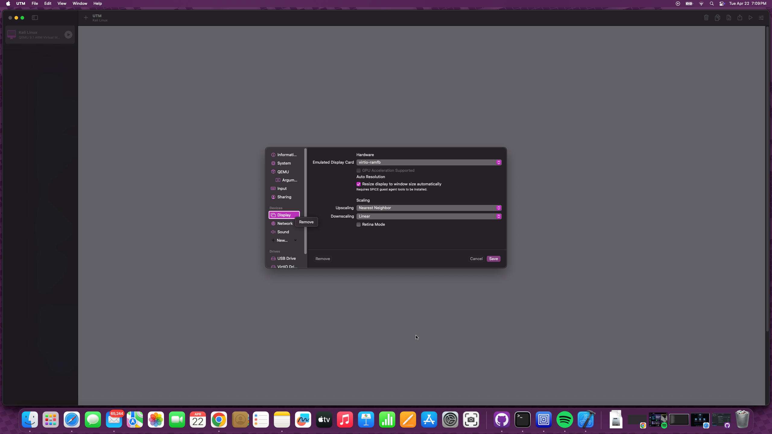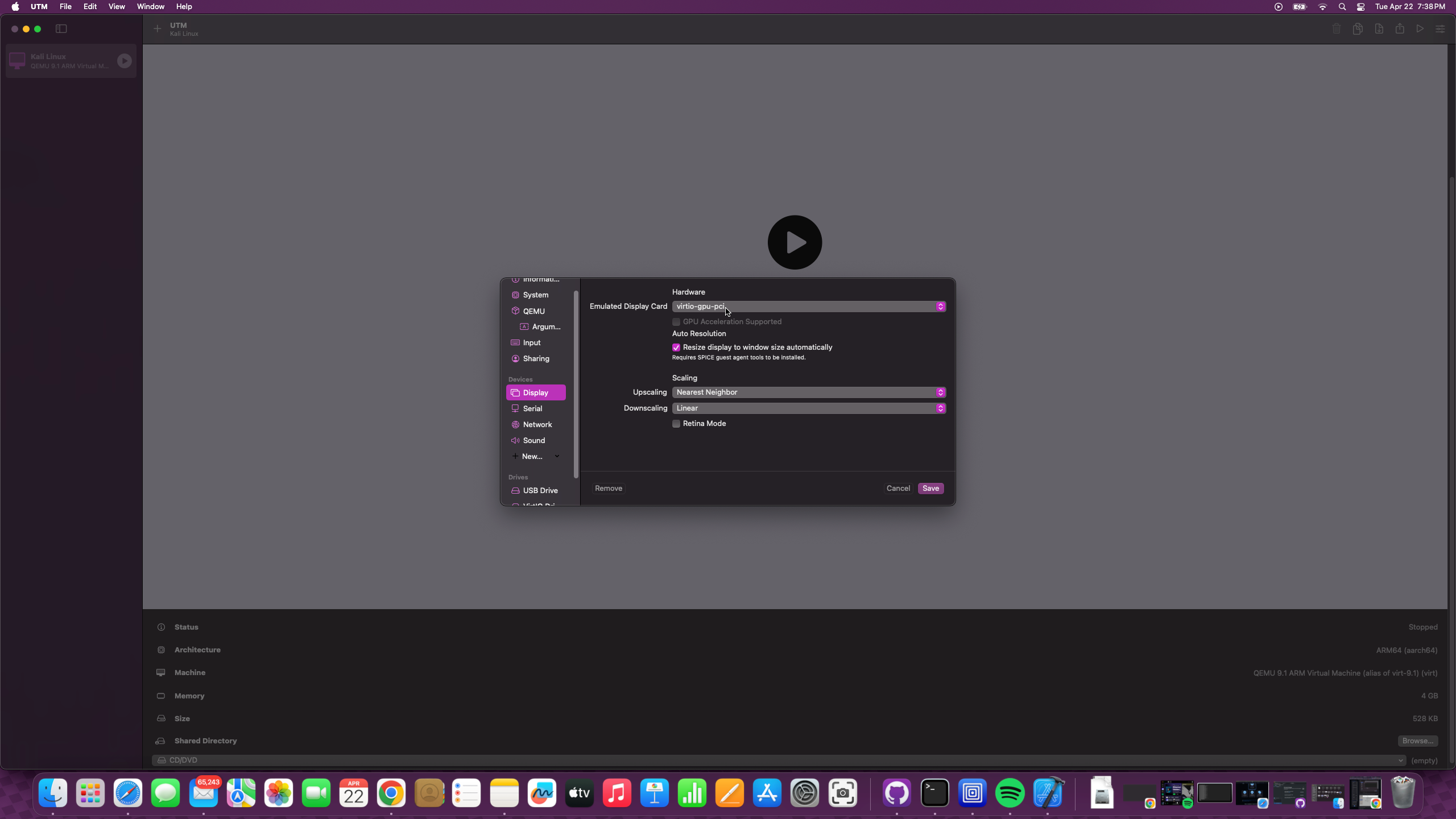 Displaydevice, using thevirtio-gpu-pcioption - Save the settings